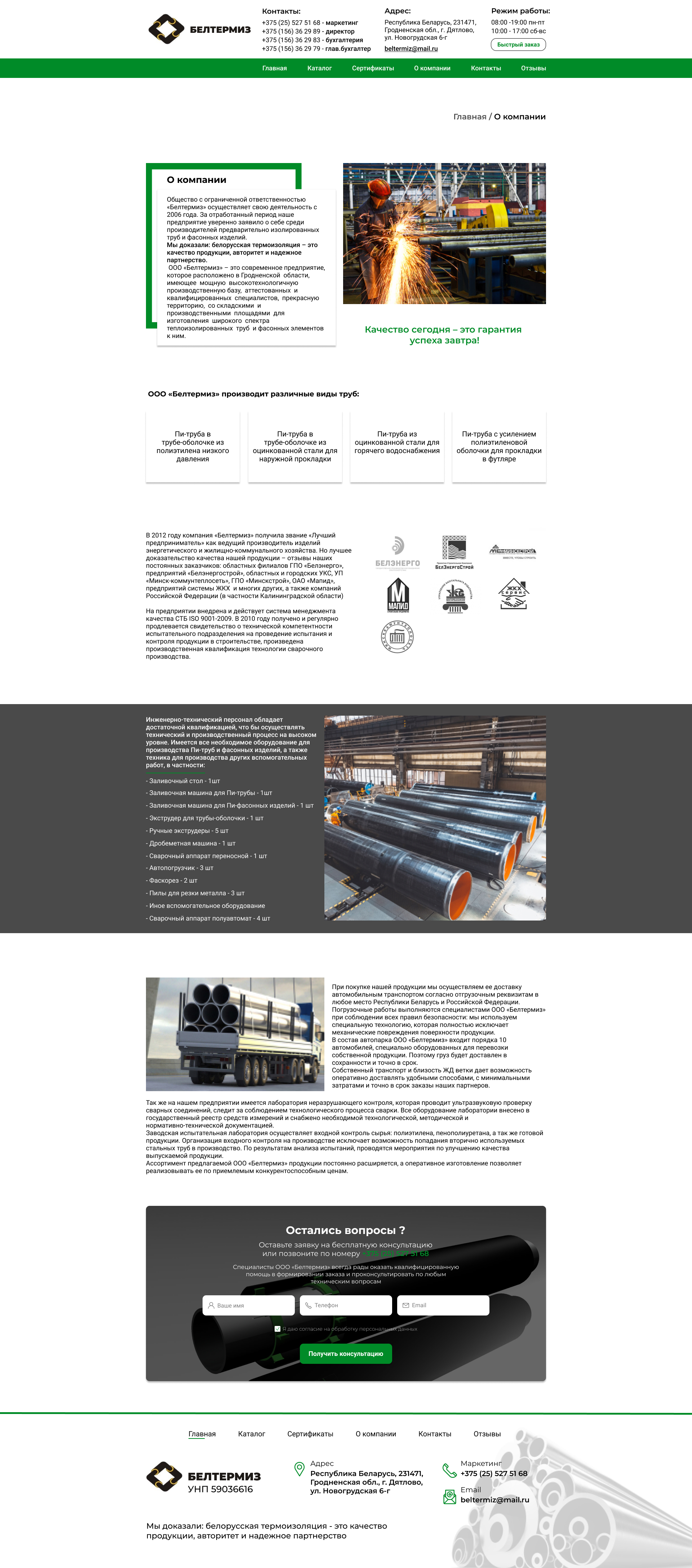 Закажите готовый продающий сайт визитка #141 в Перми за 5-7 дня «под ключ»: свёрстан, отрисован и готов к рекламе. Тематика шаблона «Производство ПИ-труб».