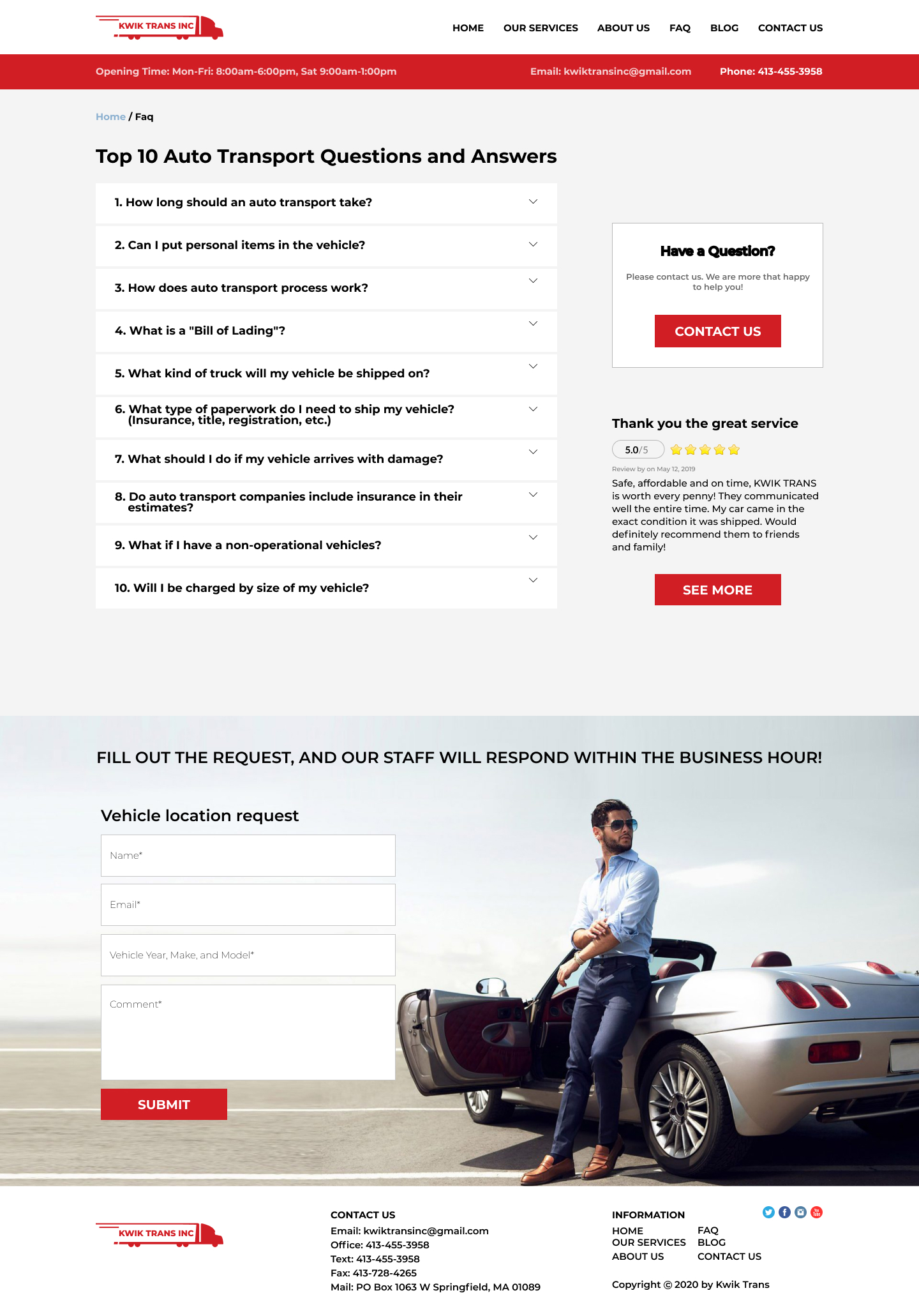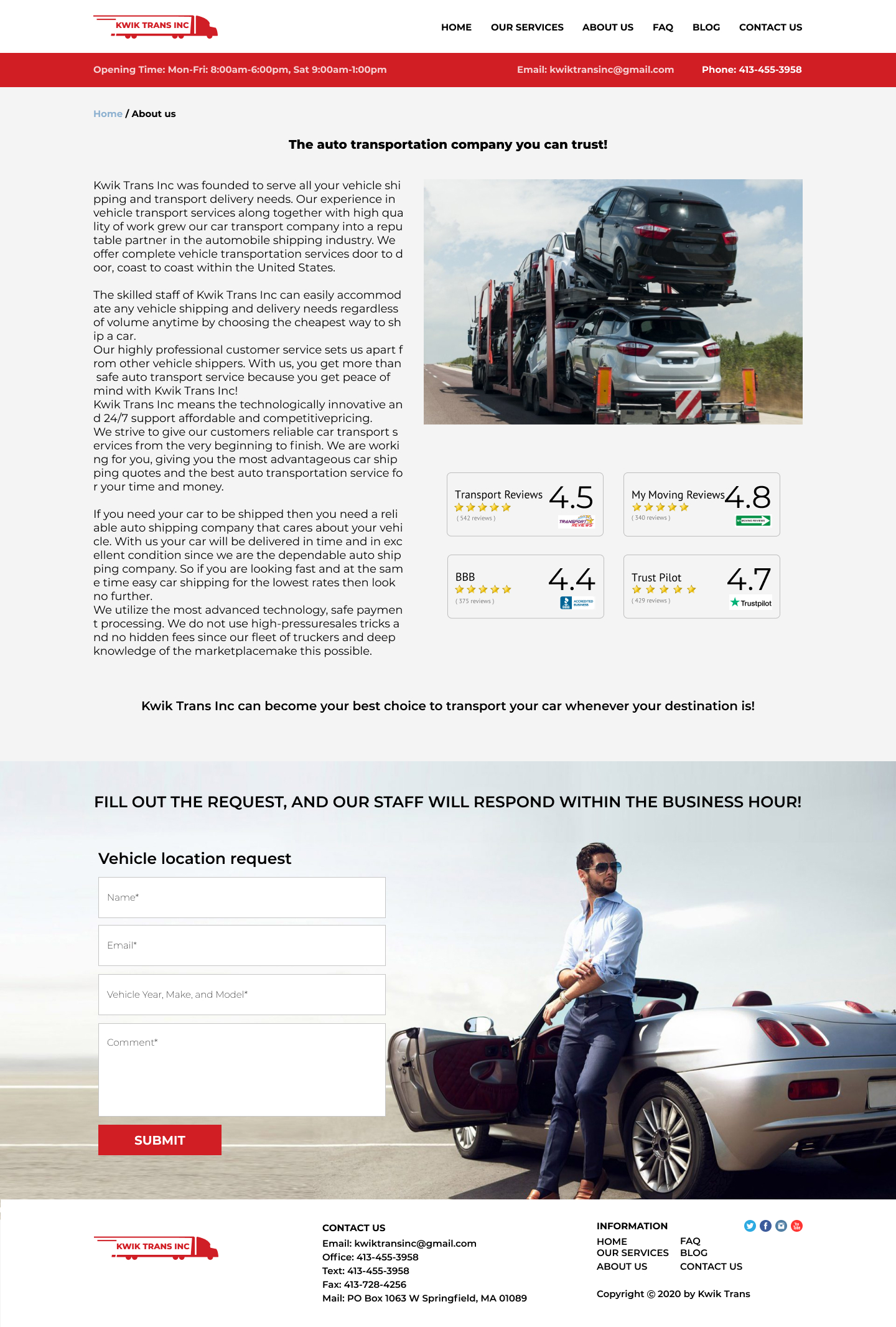 Закажите готовый продающий сайт визитка #223 в Перми за 5-7 дня «под ключ»: свёрстан, отрисован и готов к рекламе. Тематика шаблона «Safe & Reliable National Auto Transport».